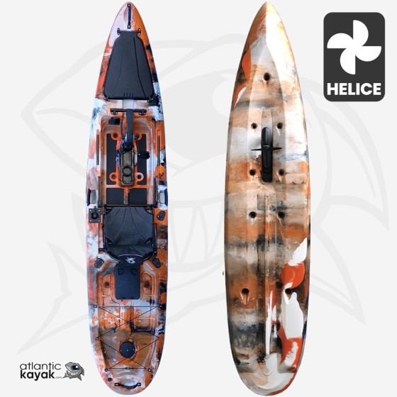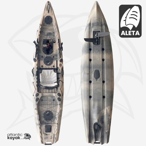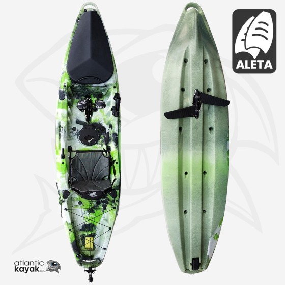 Nuestro nuevo Inuit K5 tiene un equipamiento sin competición, va equipado con un tambucho delantero de escotilla con una capacidad muy grande, otro tambucho central con una caja de aparejos incluida, otro de gran capacidad en la parte trasera y por ultimo otro en la parte proa circular provisto de bolsa impermeable, si todo esto te parece poco nuestro nuevo Inuit K5 tiene incluido una novedosa silla de aluminio ultraconfort con reposabrazos incorporado, en los laterales monta unos tubos de aluminio para montaje de accesorios extra, incluye dos sujetas cañas y un porta botellas, este modelo de más de 4 metros contiene un completo sistema de timon de acción manual y un novedoso sistema de quilla retráctil trasera y por ultimo como toda la gama Inuit, se incluye un motor de pedales con aletas flexibles.
